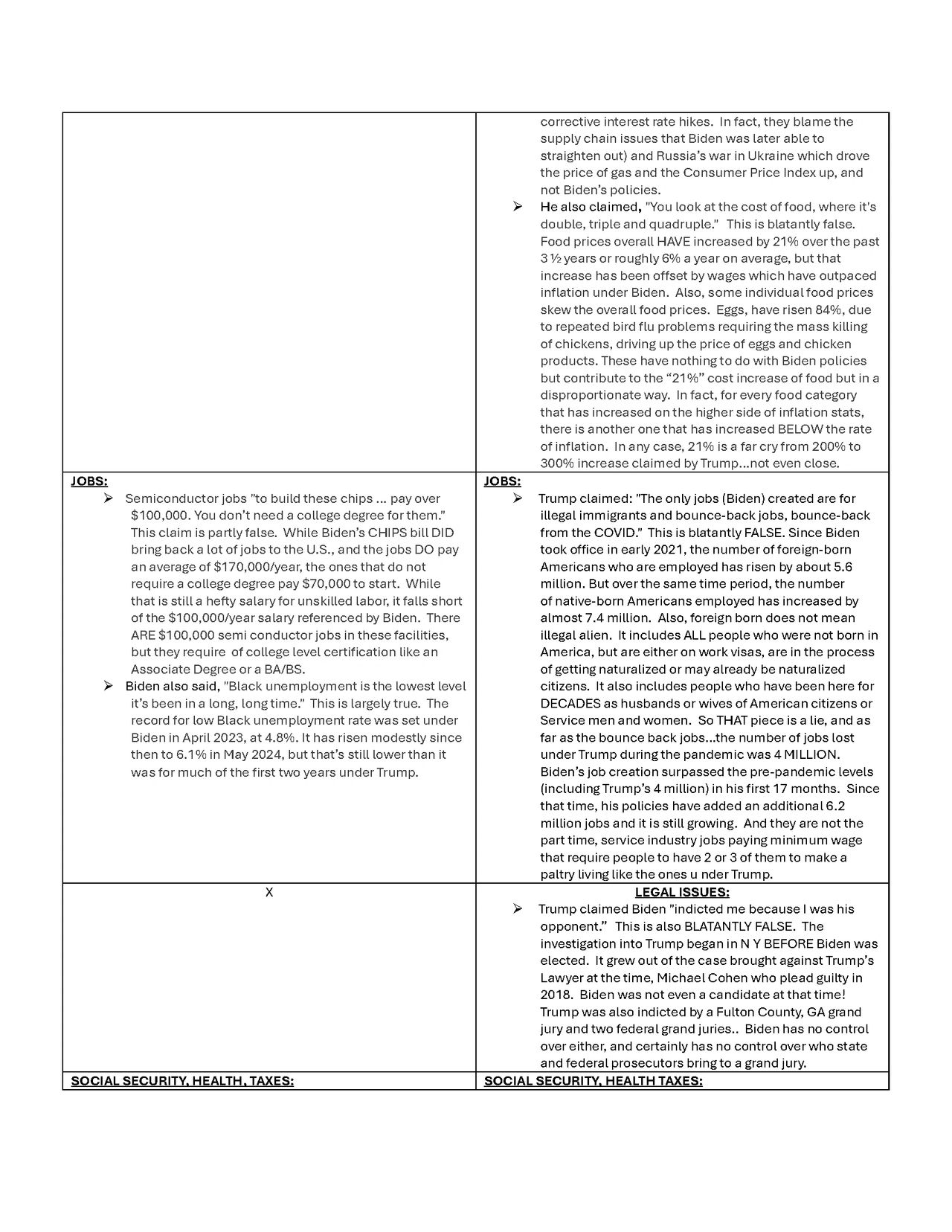 I digress. Let’s get into the debate highlights and some cursory fact-checking just to see what level of bovine excrement was being shoveled into the ears of America: