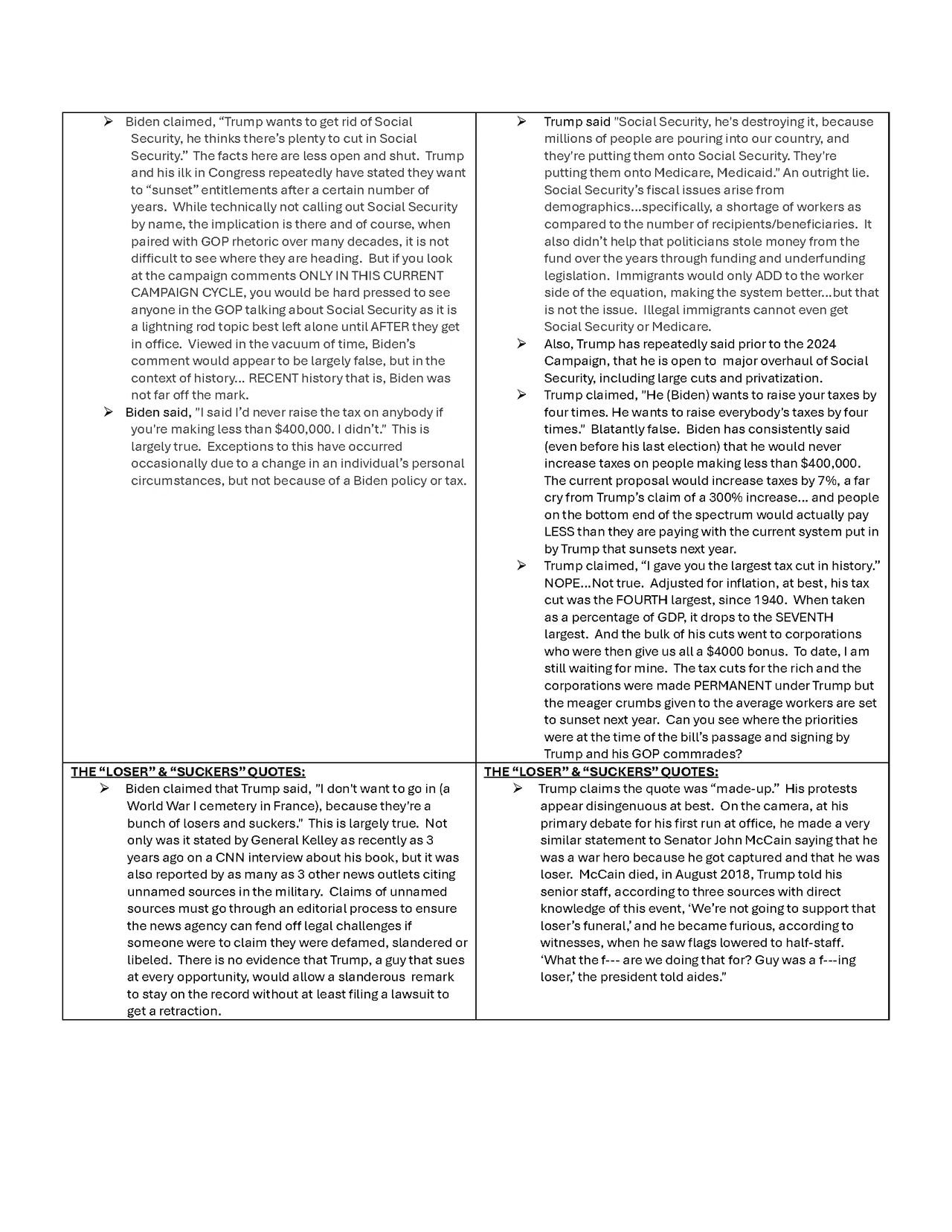 To be sure, the debate was not Biden’s finest hour… or 90 minutes. Trump had command of the debate utilizing a debate technique known as the Gish Gallop. Similar to the Russian propaganda style known as the Firehose of Falsehoods where a flood of lies, distortions, falsehoods and disinformation is thrown into multiple media outlets on multiple platforms all at once , Trump’s technique is focused on only one media outlet, CNN. Ordinarily, to counter this form of debate where you simply bombard your opponent with lies and misinformation so rapidly and profusely that even a 20 year old on steroids would not be able to keep the pace, you would have live fact-checking. CNN did not. The debate prep team for Biden also failed him. Everyone knows what the lies are going to be … Trump hasn’t stopped spewing them. The election was rigged and he really won. The economy is all Biden’s fault. He screwed the pooch leaving Afghanistan. Biden weaponized the DOJ and the legal system to come after Trump. The war in Ukraine is Biden’s fault. Taxes are going up because of Biden. Not one of these items have a morsel of truth, but they make GREAT sound bites, and if you blurt them out in rapid succession, Biden had 90 seconds or less to respond to all of them… an impossible task. One of the ways I prepped politicians for debates was to tell them to study their opponent’s campaign literature first. Then, come out and fire the first salvo by anticipating what their opponent was going to say based on their lit, and debunk it early…then you don’t have to spend valuable time explaining the lies. Biden’s debate team appears to have failed on this strategy.